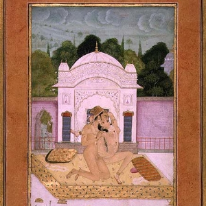 Parmi ces peintures, les premières citées sont à ressorts multiples : bien sûr elles sont là pour solliciter les sens plus ou moins défaillants des souverains ; elles ont aussi une indéniable fonction esthétique, artistique ; on connaît même les noms de certains des artistes qui les ont peintes et les écoles régionales auxquelles ils appartenaient. Y sont représentées certaines des positions du yoga sexuel, lequel s’est développé depuis le Moyen Âge ; le choix des couleurs et des pigments, des positions, des objets disposés autour des amants, le temps évoqué, tout cela se lit en fonction de la volonté tantrique de transformer le désir sexuel en un instrument de libération de l’âme – mais il serait faux d’équivaloir sexe et tantrisme. L’importance du cadre est évidente et rappelle ce que disait la Brihat-Samhitâ plus d’un millénaire plus tôt : « Le lacs de l’amour consiste à disposer ensemble une terrasse [de la maison], les rayons de la lune [i.e. le seigneur des étoiles], du vin aux pétales de lotus, l’aimée alanguie dans l’ivresse, un luth, une conversation amoureuse, l’intimité et des guirlandes de fleurs » (Brihat-Samhitâ LXXVI 2).