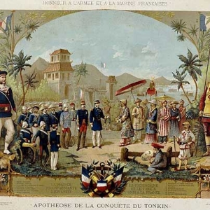 Il reste alors à résoudre le délicat problème des relations avec la Chine. Cette dernière, en dépit de son antique volonté de suzeraineté sur le Vietnam, reconnaît le protectorat français sur son voisin par la convention de Tien Tsin, signée le 11 mai 1884. Ce traité prévoit le retrait de toutes les troupes chinoises stationnées au Tonkin ; les opérations de retrait se font très lentement, et un incident survenu à Bac Lê, le 15 juin 1884, entraîne la rupture, bientôt suivie de la destruction d’une partie de la flotte chinoise à Fuzhou (Fou Tchéou), par Courbet, le 23 juillet de cette même année 1884. L’année suivante, un autre incident, grossi par la presse parisienne, entraîne un mouvement d’opinion hostile à la colonisation du Tonkin : il s’agit de l’évacuation par les Français du poste de Lang Son, à la frontière chinoise. Les radicaux, menés par Clemenceau, se déchaînent contre les abus de la guerre coloniale et finissent par obtenir la chute du gouvernement Ferry. La nouvelle chambre ne fait cependant pas évacuer le Tonkin, mais continue à voter les crédits à une faible majorité.