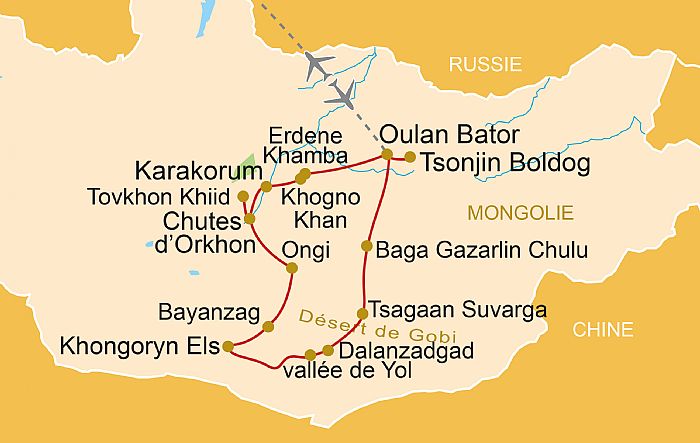 - Les vols internationaux Paris/Oulan Bator et retour, avec ou sans escale sur lignes régulières