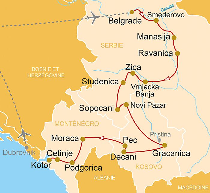 La Serbie est le pays de l’ample Danube aux eaux tumultueuses et aux vallées verdoyantes tandis que le Monténégro lui oppose les reliefs arides de ses montagnes brûlées de soleil, le caractère oriental de ses villes et villages et la limpidité d’azur de l’Adriatique ouverte sur le monde. La Serbie fut, au Moyen Age, le centre d’un vaste empire lié culturellement au monde byzantin. A cette époque de gloire, le royaume de Serbie sut attirer les plus grands penseurs et les plus grands artistes du monde hellénique. Aujourd’hui, le visiteur sera ébloui en découvrant, cachés dans de charmantes vallées, quelques-uns des plus beaux monastères d’Europe décorés de fresques si remarquables qu'elles pouvaient rivaliser avec celles de Byzance. Une incursion au Kosovo nous permettra également d'admirer les plus beaux monastères de la région. lire moins