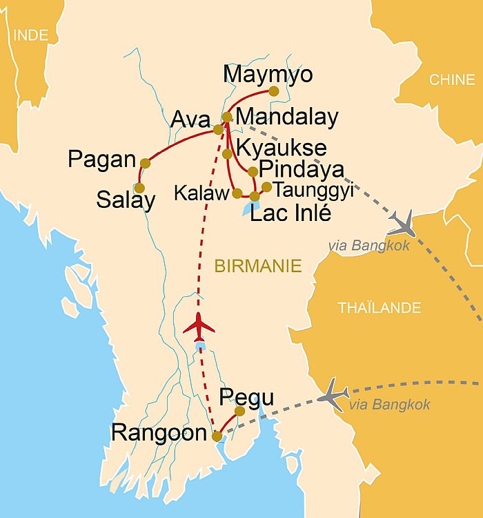 L’histoire du pays est longue et complexe avec la venue des Birmans qui s'imposèrent aux prédécesseurs môns et Pyus, avant que les Chans ne rebattent les cartes en s’installant sur leur plateau. Terre de rencontres, la Birmanie doit pour l'essentiel son unité au bouddhisme theravada dont les plus belles réalisations sont les monuments édifiés à Pagan, sans oublier leur continuité dans la Haute-Birmanie, à Ava, Sagaing, Amarapura et Mandalay, la dernière capitale.