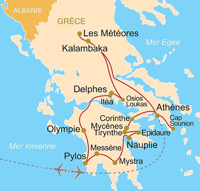 A l'extrémité méridionale de la péninsule balkanique, entre collines couvertes d'oliviers et côtes échancrées ouvertes sur les eaux bleues de l’Égée, la Grèce demeure ce monde unique où se sont mêlés hommes, héros et dieux pour faire de ses paysages et de ses hauts lieux une référence majeure de notre imaginaire. Ce voyage aux racines de notre civilisation occidentale vous propose de partir à la rencontre des légendes homériques, d'évoquer les mânes d'Agamemnon et de la belle Hélène, de deviser avec Socrate sur l'Acropole, d'interroger la Pythie à Delphes et d'applaudir les athlètes sur le stade d'Olympie avant de vous émerveiller devant l'audace architecturale des Météores ou la délicatesse du décor des églises byzantines. lire moins